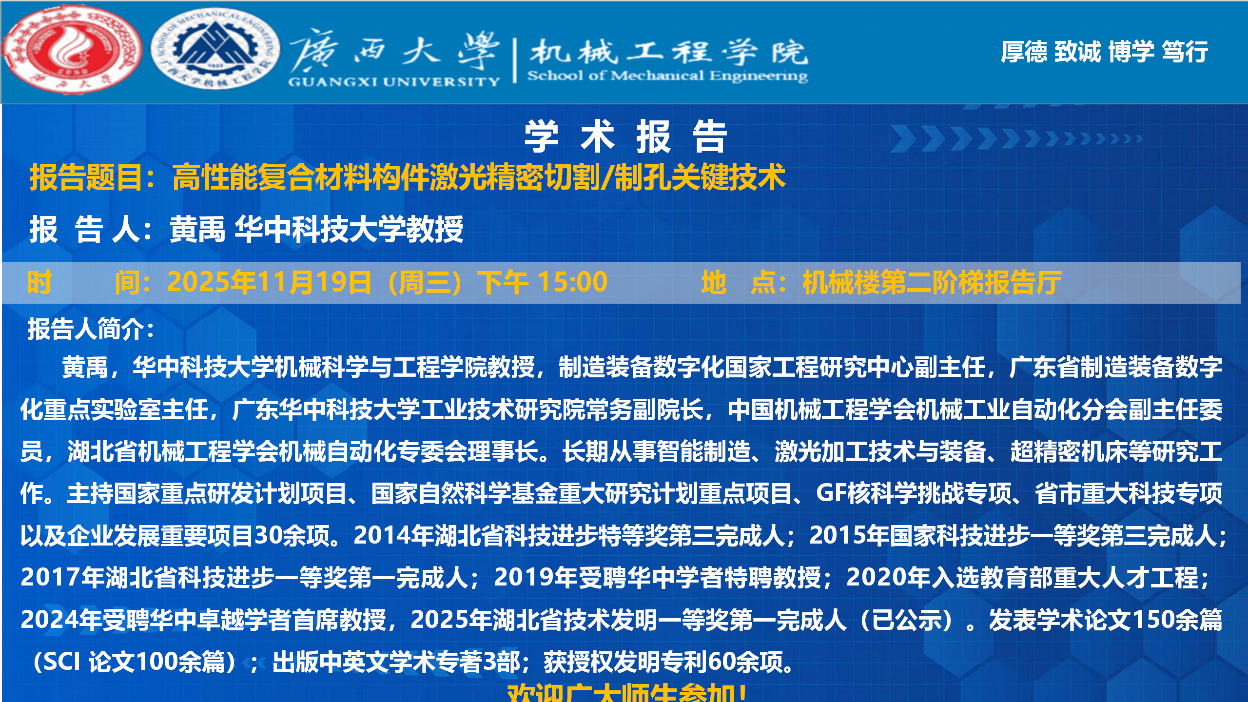 【亚洲一区二区三区情趣在线学术报告】高性能复合材料构件激光精密切割/制孔关键技术