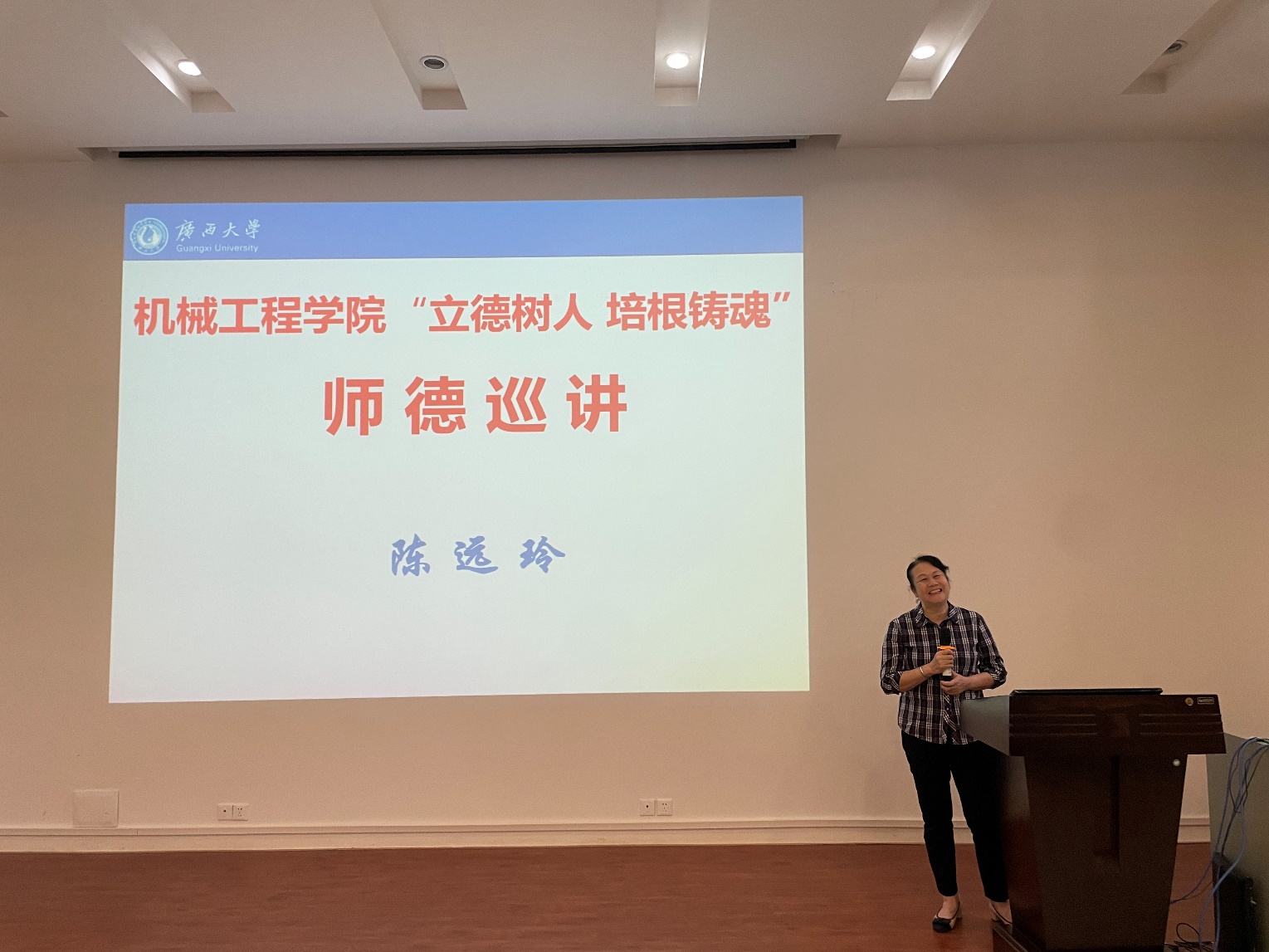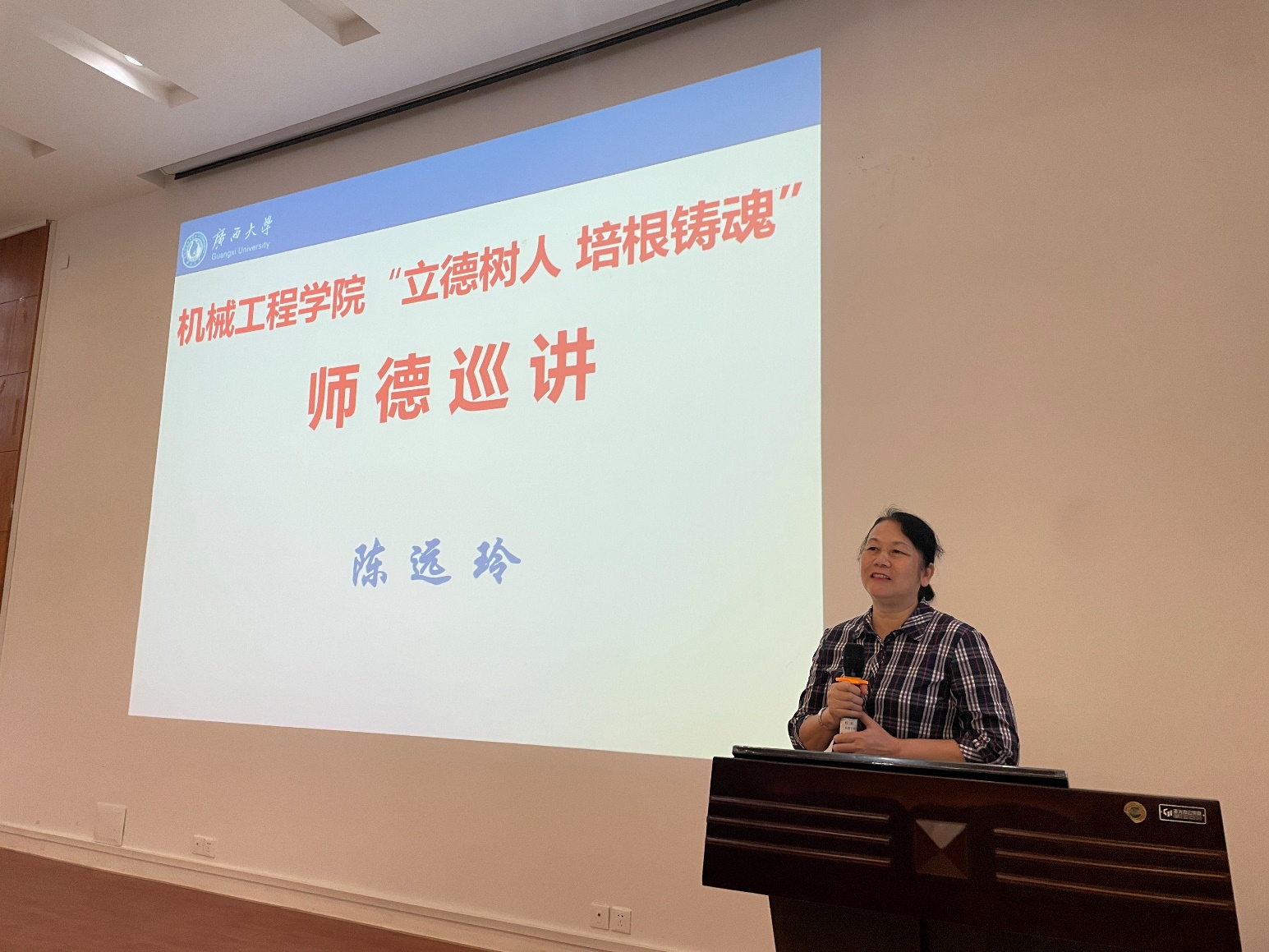 陈远玲教授以生动的案例诠释师德内涵,讲述她作为教师敬业乐业,干一行、爱一行、钻一行的从教心得。陈教授热爱党的教育事业,努力以高尚的师德风范、深厚的学识积累和纯良的人格魅力来教育和感染学生,以广博知识润化学生,用鼓励和温暖转化学生。对待学生她从不抱任何偏见,真诚地关心学习上有困难的学生,她几乎每年都指导留级学生的毕业设计并使他们达到毕业要求;她善于鼓励和发挥学生的特长,树立学生的专业自信心。她将爱国情怀、工匠精神、工程师职业道德规范融入课程教学,主持和参与了《机械工程概论》《机电液分析及测控实验技术》国产破解精品99课程师政示范课建设,《机电液分析及测控实验技术》获批广西一流本科课程,并被推荐参评国家级一流本科课程。身体力行,虚心学习,带头克服重重困难开展各项教学改革和专业建设工作。2017年机械设计制造及自动化专业率先成为广西机械类第一个通过认证的专业,2019年获批国家级一流本科专业建设点,2020年第2次通过了专业认证,工程教育质量进入国际先进行列,在区内外同类高校中起到了很好的示范引领作用。