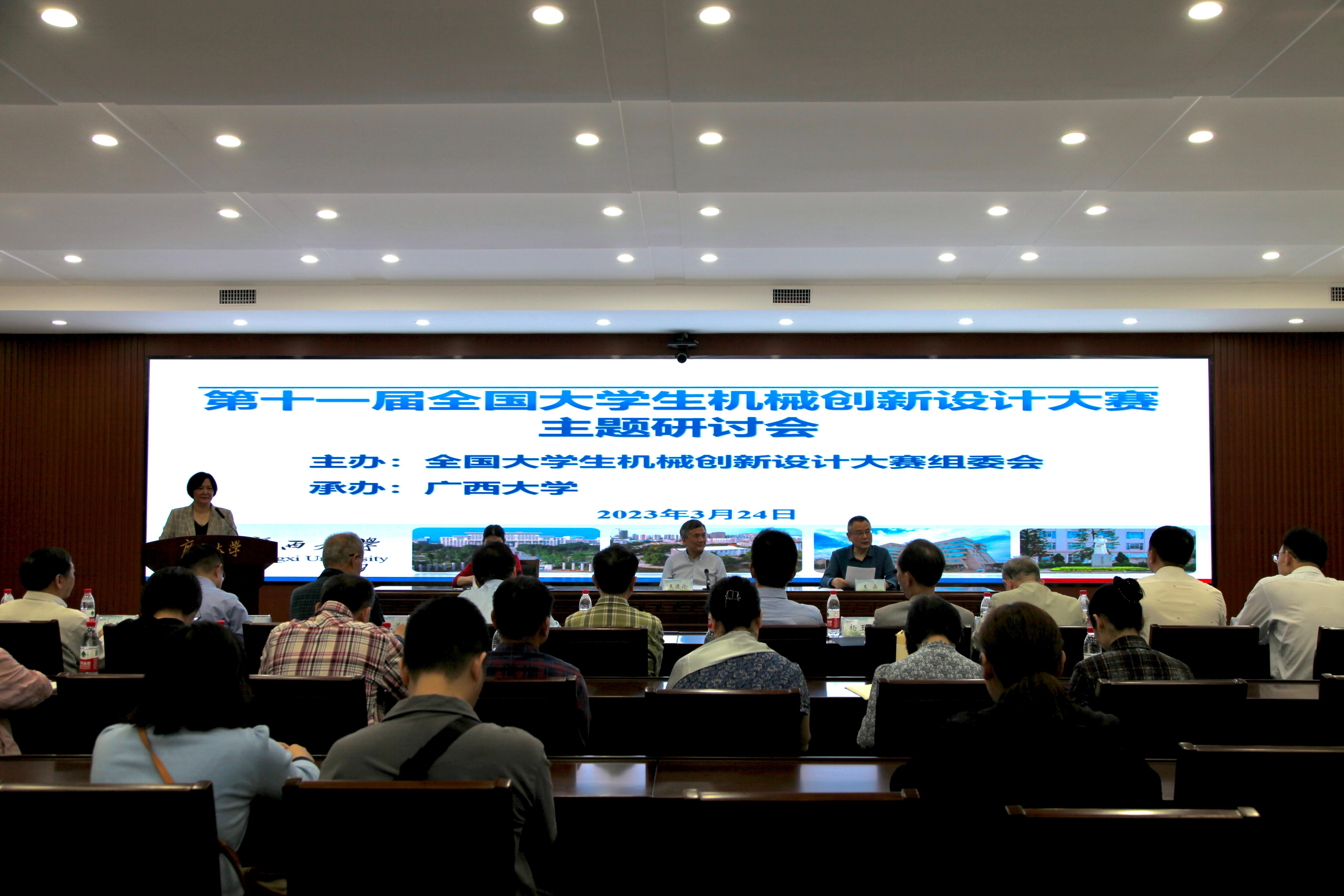 2023年3月24日,全国大学生机械创新设计大赛组委会在我校召开第十一届全国大学生机械创新设计大赛主题研讨会。此次研讨会由我远承办。全国大学生机械创新设计大赛秘书长王晶,教育部高等学校机械基础课程教学指导分委员会、全国大学生机械创新设计大赛专家委员会、全国大学生机械创新设计大赛组委会等来自浙江大学、天津大学、同济大学、西安交通大学、大连理工大学、华中科技大学、西安电子科技大学、西南交通大学、贵州大学、合肥工业大学、东南大学、长春理工大学等高校的13名专家莅临。教务处处长耿葵花、亚洲一区二区三区情趣在线党委书记卢婵江、常务副院长蒙艳玫等承办单位代表参加会议。
