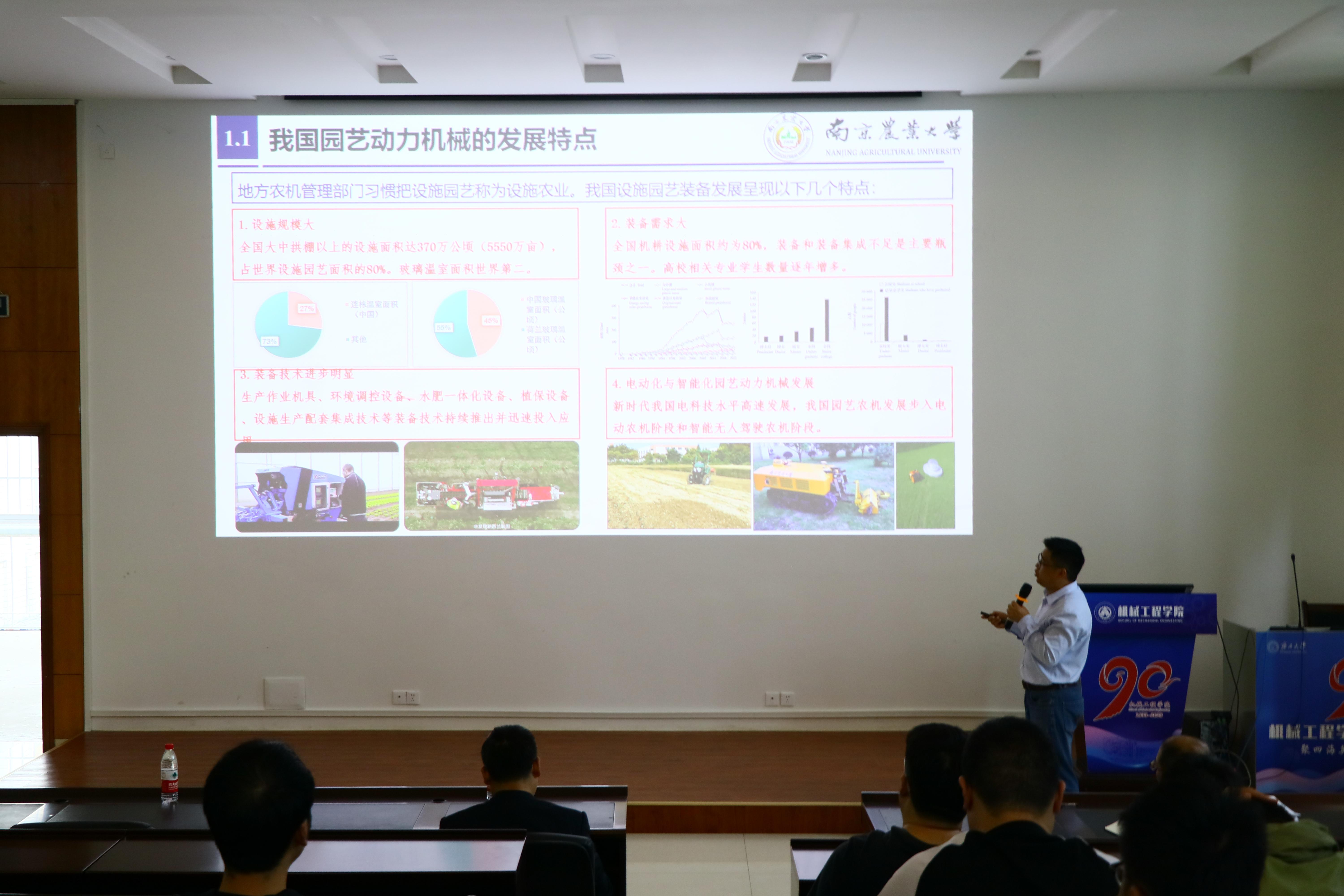肖教授在报告中详细介绍了国内外电动智能园艺动力机械的研究现状与发展趋势,分享了其团队近年在电动农机方面的丰富研究成果,让师生们感受到电动智能技术与农机的关联与魅力,受到在场师生的广泛好评。报告结束后,肖教授还与在场同学进行了热烈的交流与讨论,讲座在热烈活跃的氛围中圆满结束。