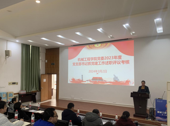 院党委书记卢婵江进行总结讲话。她指出,过去一年,学院党委以高质量党建引领学院高质量发展为指导思想,以创建党建标杆院系为目标,以主题教育实践为抓手,带领全院各支部学习贯彻习近平新时代中国特色社会主义思想和党的二十大精神,认真落实上级党组织决策部署,扎实推进学习贯彻习近平新时代中国特色社会主义思想主题教育,认真组织“三会一课”、“五基三化”系列工作,在各支部的团结协作下,学院的基层党建有了较大改善,全院师生的工作面貌焕然一新,以党建促改革发展取得明显的成效。但在看到成绩的同时,我们也要有清醒的认识,部分支部在基层党建创新、支部建设活力提升、党建业务深度融合等多方面参差不齐,还有不同程度的改进空间,希望各支部一要压实理论武装,进一步增强抓党建工作的能力和本领。要持续跟进学习习近平总书记系列重要讲话精神,提高学习的质量和效果,不断提高抓党建工作本领和水平,努力把党支部建设成为贯彻党的决定、团结凝聚党员、推动学院高质量发展的坚强战斗堡垒。二要创新工作思路,持续发挥党建引领作用。要勤于思考,敢于创新,各支部要积极创新支部主题党日活动形式,实现党建业务双融合促提升;要持续加强党建宣传教育,把稳守牢意识形态阵地,弘扬主旋律、传播正能量,持续发挥党建引领作用。三要压实工作责任,创建具有机械特色的党建品牌。要进一步结合教书育人、学科科研特色,加快“一支部一品牌”建设,以党建工作统领全局,积极开阔思维和资源,强化党员使命担当,争取今年在党建“创先争优”“双带头人”及人才队伍建设等方面取得新的突破,为学院高质量发展贡献力量!