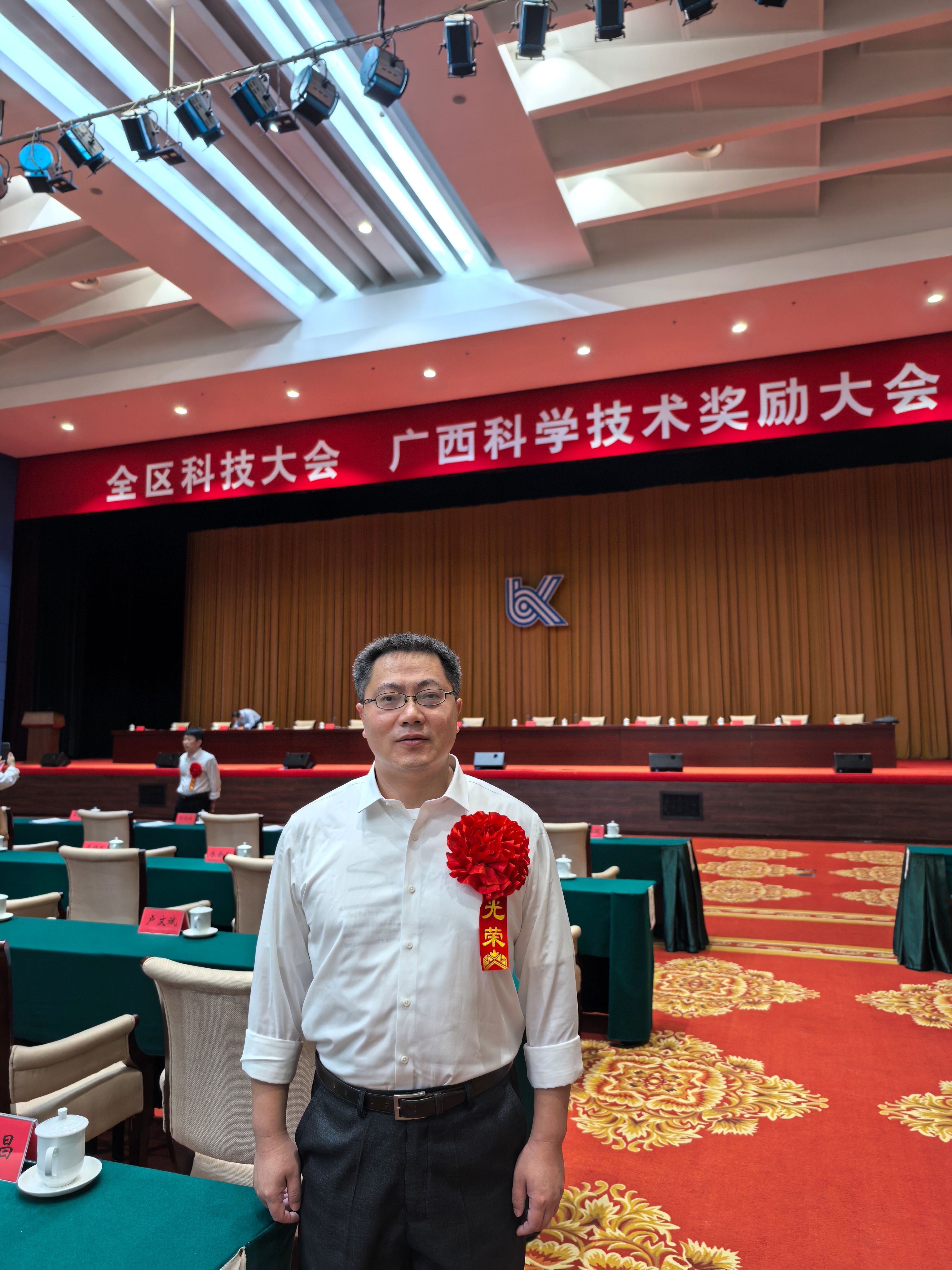 近日,全区科技大会、广西科学技术奖励大会在南宁召开,大会公布2023年广西科学技术奖获奖榜单,并为获奖者颁奖。我院龙雨荣获2023年度广西科学技术发明奖一等奖,潘明章荣获广西科学技术进步奖一等奖,双双实现我院在该奖项上的历史突破。此外,作为获奖成员之一,我院的黄伟、陈勇荣获广西科技进步奖一等奖2项,官维荣获广西科技进步奖二等奖1项。会后,龙雨教授和潘明章教授还作为获奖代表出席了自治区领导与院士专家座谈会。