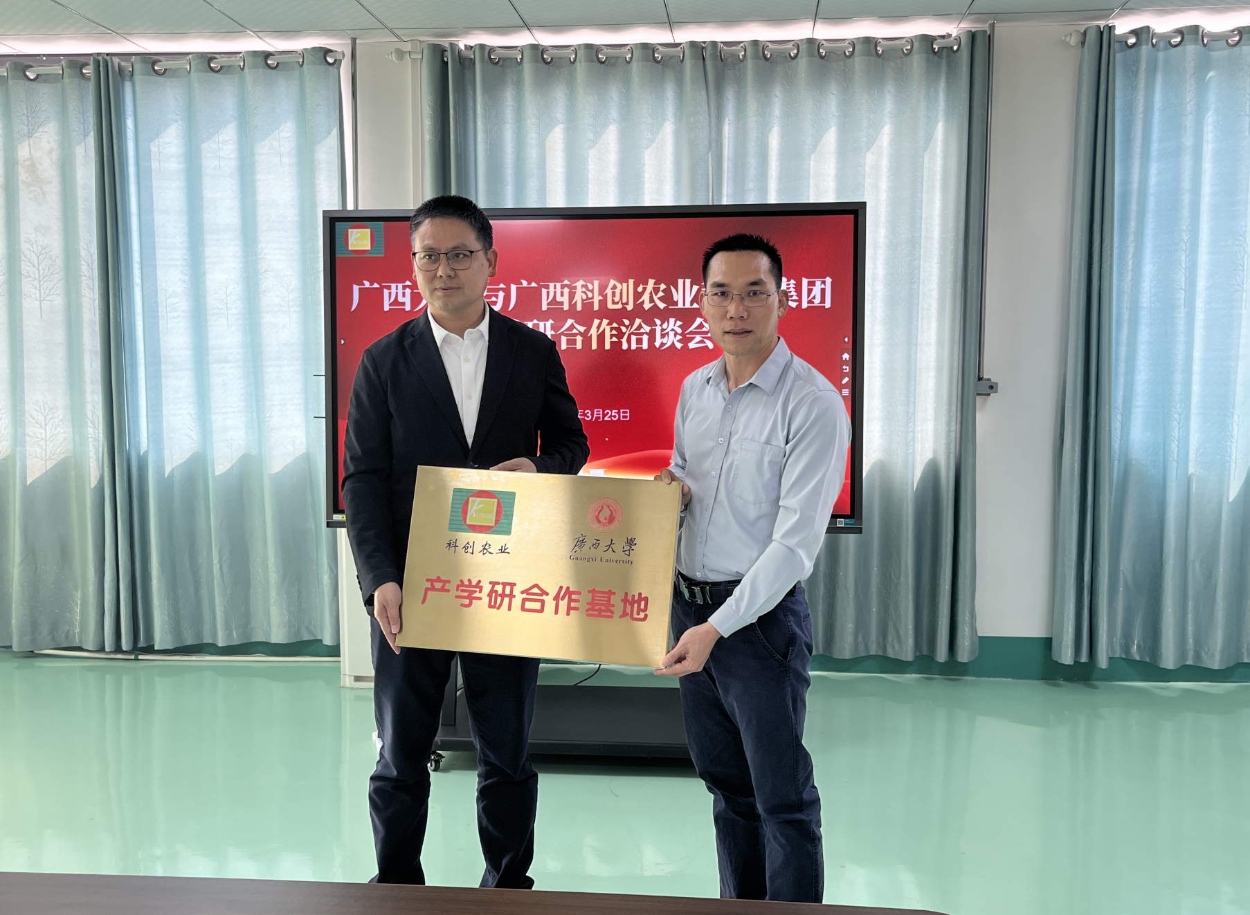 最后,贺德强院长代表西大和张胜忠董事长签署“国产破解精品99-广西科创农业科技集团产学研合作基地”共建协议,并现场举行揭牌仪式。