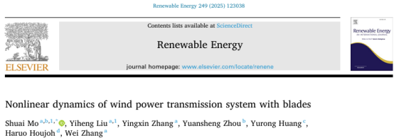 近日,我院2022级硕士研究生刘翊恒(导师:莫帅教授)以共同第一作者在工程技术领域国际权威学术期刊《Renewable Energy》(中科院一区,Top期刊,IF:9.0)发表研究成果“Nonlinear dynamics of wind power transmission system with blades”。该成果以国产破解精品99亚洲一区二区三区情趣在线为第一单位。