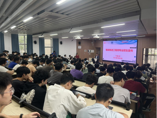 2025年5月25日上午,我院在第十教学楼10A-101教室召开《智能制造工程》微专业招生宣传会,会议邀请了教务处谢健副处长、兄弟学院副院长、北京华航唯实机器人科技股份有限公司、国投融合科技股份有限公司、海尔智家股份有限公司等合作企业参加,会议由学院党委副书记黄路明主持,副院长李俚作总结讲话,院长助理项载毓老师做大会的技术支持,全校相关专业将近200名学生到现场参加招生宣传会。