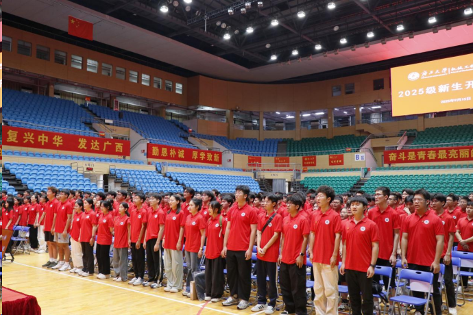 秋意正燃,金桂芬芳,2025 年9月15 日晚,我院2025级新生开学典礼在学校西体育馆隆重举行。学院领导、各系主任、辅导员及新生班主任与2025级全体新生齐聚一堂,一同见证新生们踏入新征程的重要时刻。典礼由学院党委副书记、纪委书记黄路明主持。