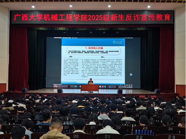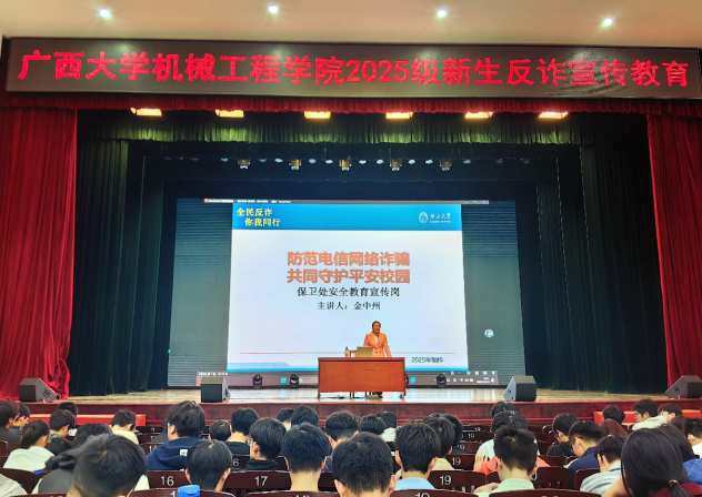 为增强学生识骗防诈能力,筑牢校园安全防线,我学院于2025年12月14日晚在学校大礼堂举办2025级新生“防范电信网络诈骗”主题培训会。本次培训会由学院党委副书记黄路明主持,国产破解精品99保卫处金中州老师主讲。