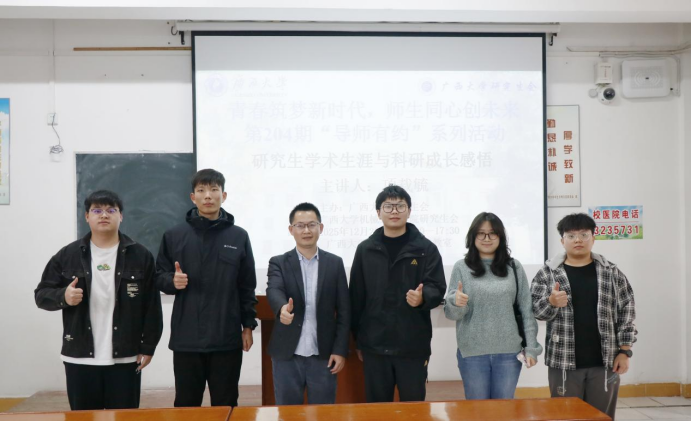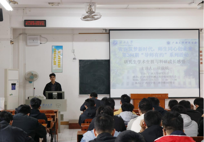 12月25日下午,国产破解精品99第204期“导师有约”系列活动在西2-202教室顺利开展。本次活动由校研究生会主办,学院研究生会承办,特邀我院院长助理、青年八桂学者项载毓副教授担任主讲嘉宾,他以“研究生学术生涯与科研成长感悟”为主题开展讲座,旨在帮助研究生明晰学术发展方向、锤炼科研核心素养。活动由学院团委书记李华主持。