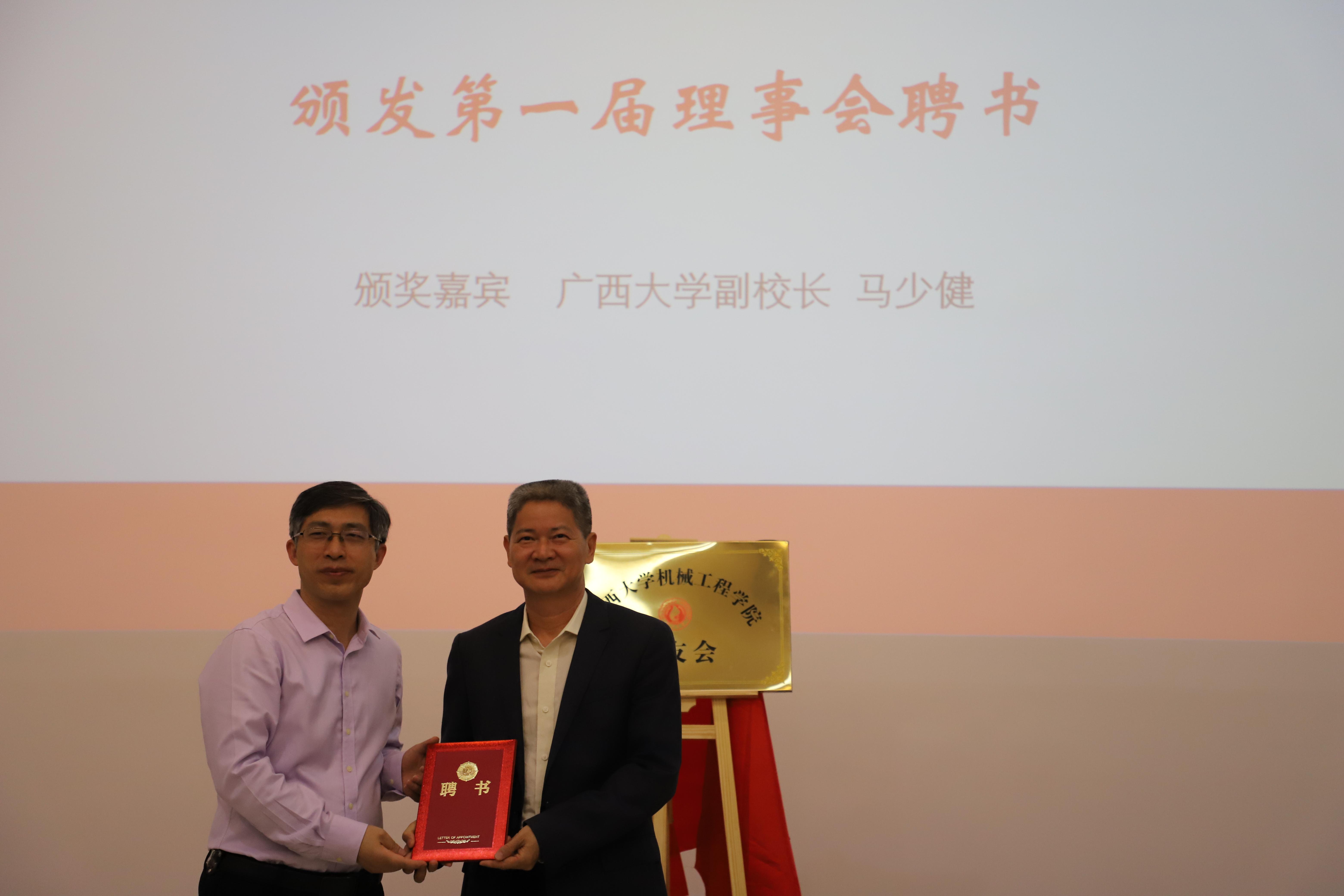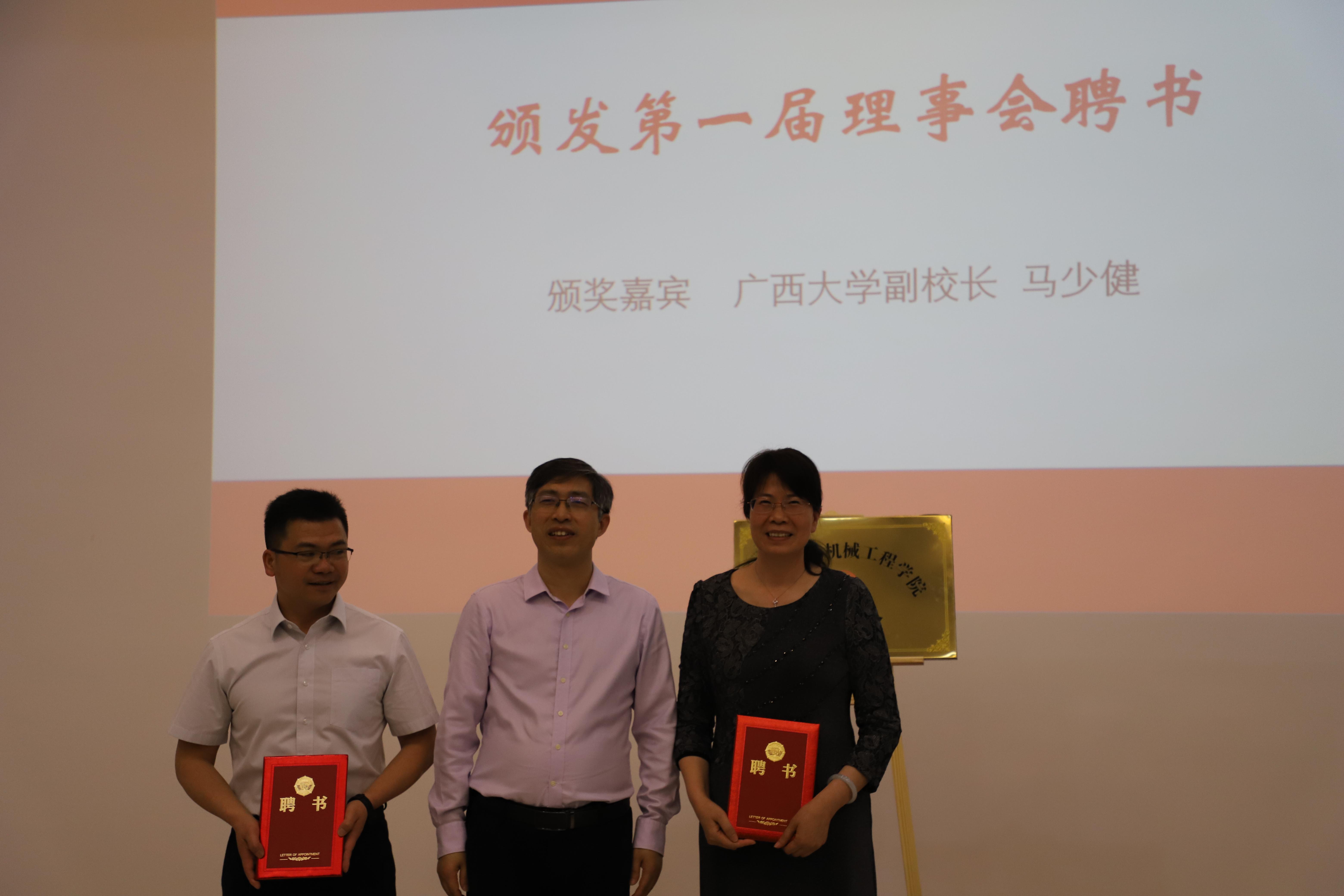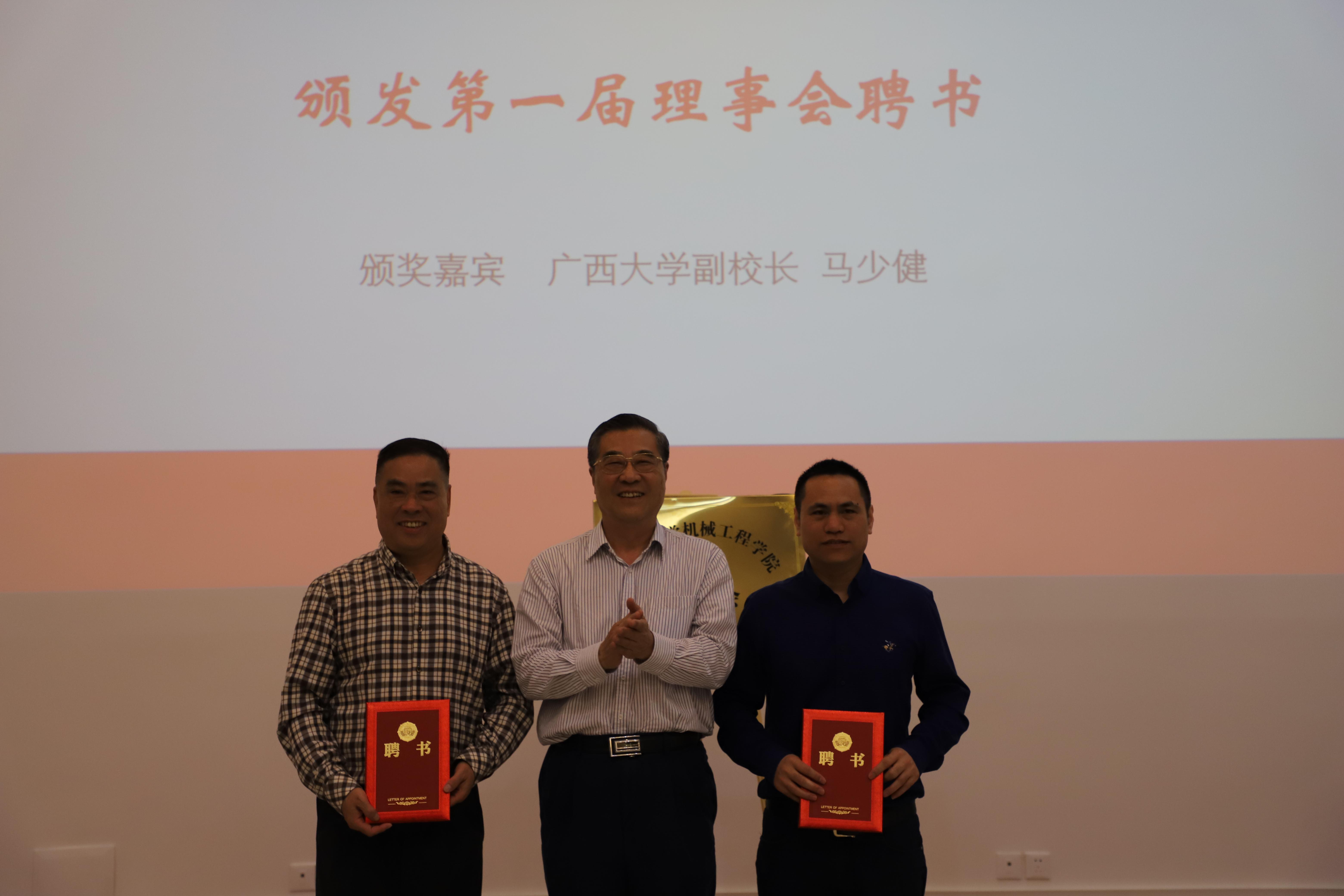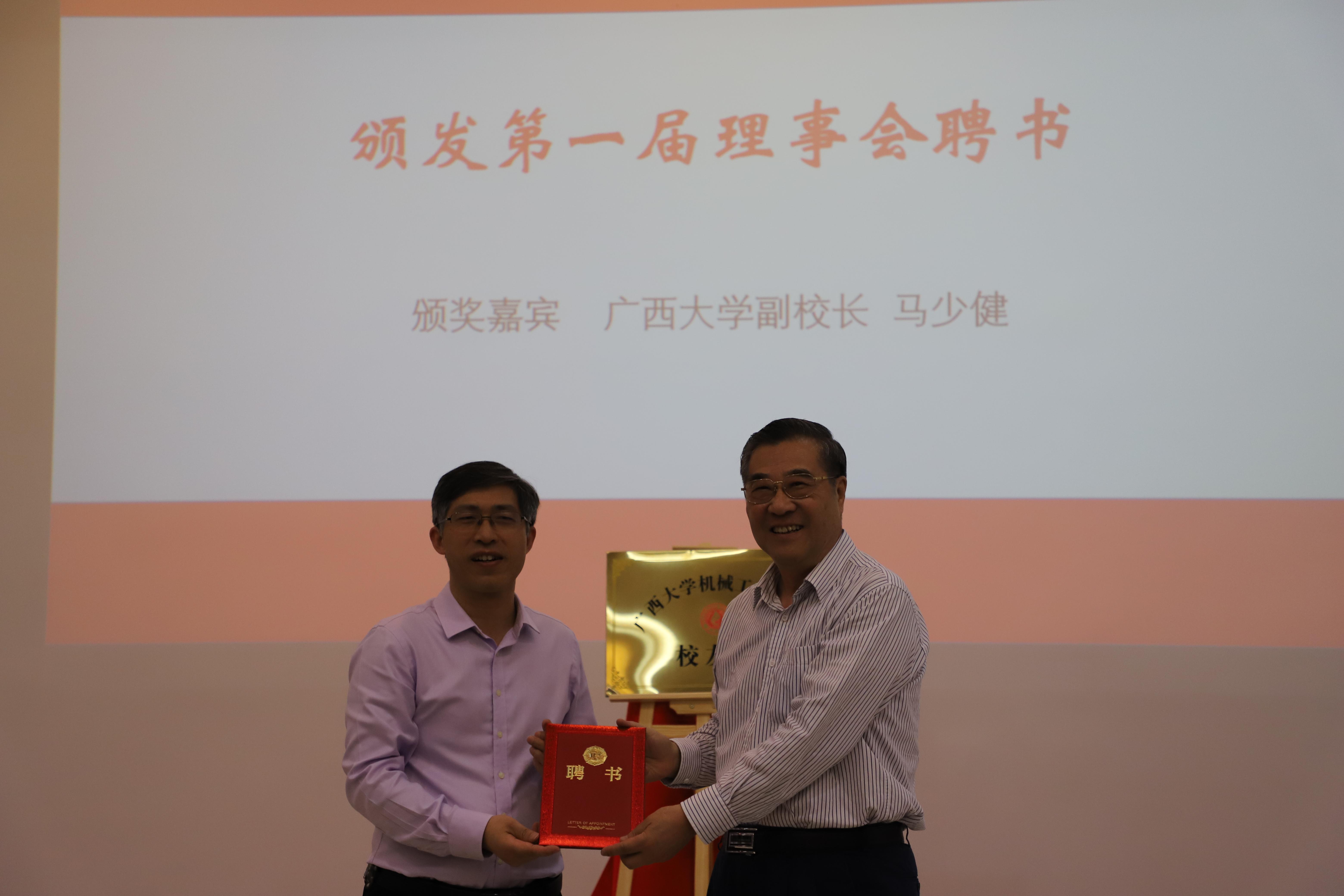 校友会成立仪式暨揭牌仪式在第二阶梯教室举行。自治区政协原副主席林国强、自治区政府参事黄健、国产破解精品99原副校长毛汉领等120多位校友出席成立大会,国产破解精品99副校长马少健代表学校出席并讲话。成立大会由学院党委书记卢婵江主持。