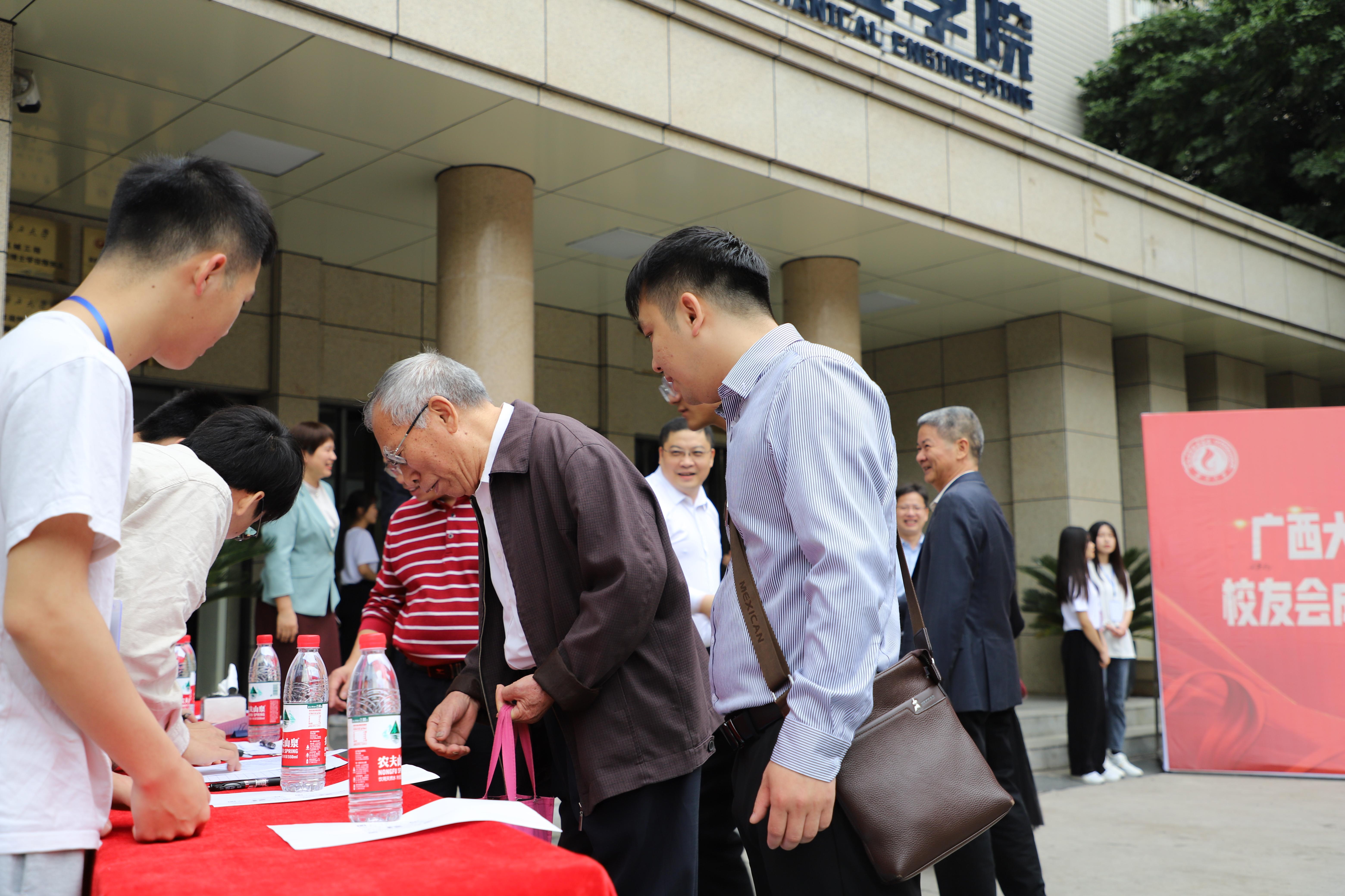热情的校友与退休的老教师早早就来到学院门前,重温意气风发的求学时光,追忆学院当年的模样。不少校友是从区内外特意赶来参会的。大家在签名墙上写下自己的名字,与同窗、老师合影留念。