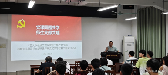 2024年6月4日晚8点,亚洲一区二区三区情趣在线教工第二党支部和研究生第四党支部在学院报告厅联合开展主题党日活动,深入学习党纪条例,增强支部党员的党性修养,促进师生支部共建。