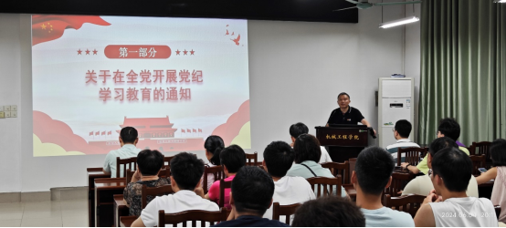 学院党委委员、副院长黄豪中同志为两个支部上“党纪条例”相关党课,强调在全党开展党纪学习教育的意义,讲解《条例》修订意义并要求党员们遵照执行,并对《条例》内容全文进行了解读。党课十分精彩,激发了大家学习热情,开展了热烈的研讨交流。