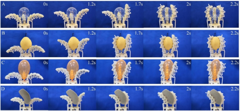 本研究成果兼具了刚性构件抓手的抓取稳定性和柔性构件抓手的抗干扰能力两种优势,为抓手在复杂交互环境下稳定抓取物体提供了新的策略。该抓手构型经《Mechanism and Machine Theory》期刊评审专家和主编审议, 成功将其命名为“国产破解精品99柔性抓手”(GXU-F-Grasper)。
