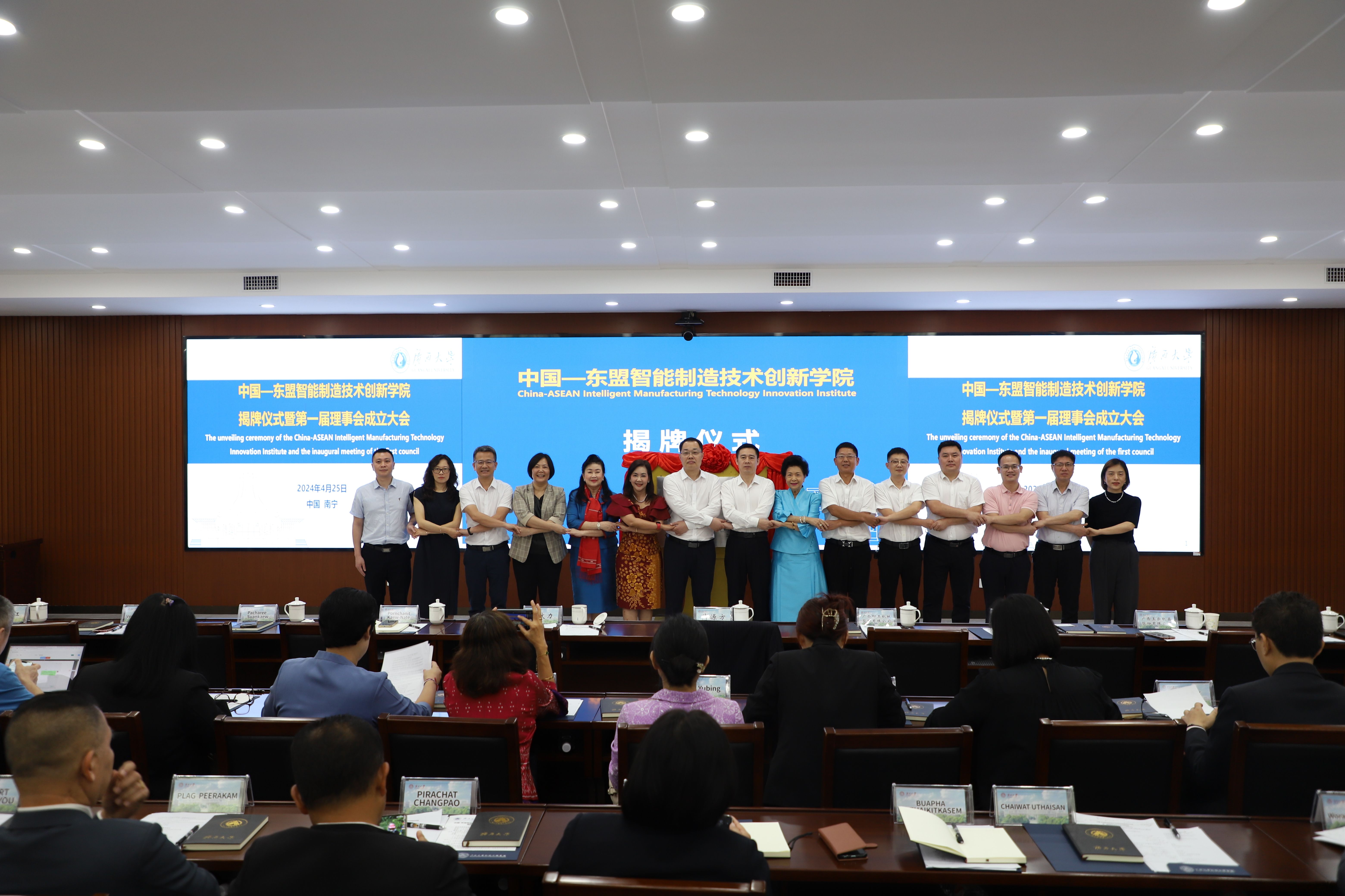 4月25日上午,由我院牵头的中国-东盟智能制造技术创新学院在我校揭牌成立。校党委常委、副书记马献力、自治区教育厅高教处处长兼学位管理与研究生教育处处长(自治区学位办主任)傅源方共同为技术创新学院揭牌。